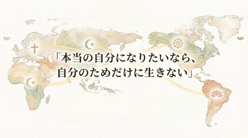 今回は、世界のさまざまな宗教や思想が共通して伝えてきた、少し不思議で、とても深いメッセージを、やさしくひも解いていきます。